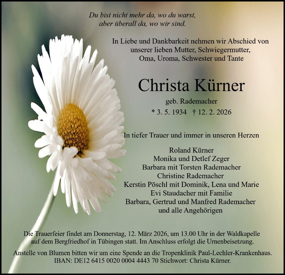 unsere Tränen auch, unser Lachen und unseren Dank.